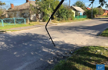 У Любомлі під час негоди обламалася опора лінії електропередач і впала на дорогу на вул. Вокзальній. Майже тиждень минув, а стовп, який створює небезпеку для водіїв, немає кому прибрати