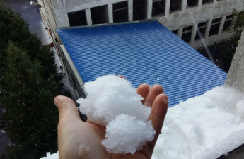 У післяобідню пору частину Луцька за декілька хвилин накрило білим мокрим килимом.