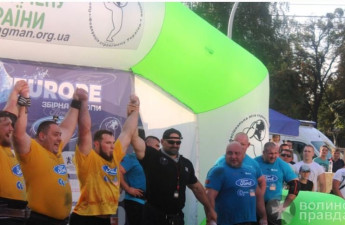 Збірна України зі стронгмену перемогла збірну європейських богатирів. Товариські змагання відбулися в День незалежності України, 24 серпня, в обласному центрі Волині.