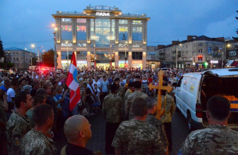 На Театральному майдані зустріли тіло загиблого від кулі снайпера старшого лейтенанта 128-ї окремої механізованої бригади Георгія Ольховського.