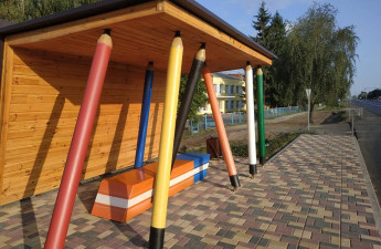 У селі Княгининок Луцького району в оригінальній зупинці громадського транспорту встановили креативну «лавку-гумку»