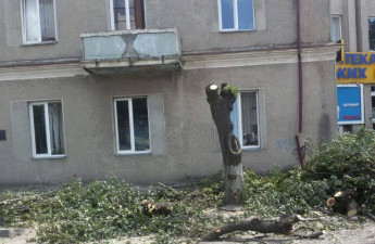 Комунальна служба ріже дерева вздовж тротуару на вулиці Олени Пчілки, біля Ковельської центральної районної лікарні.