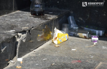 Під стінами Волинського академічного обласного українського музично-драматичного театру невідомі залишили пусті пляшки з-під алкоголю, використані серветки та пачки з-під цигарок