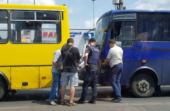 Маршрутне таксі і автобус, який використовують для пасажирських та вантажних перевезень, зіткнулися біля торгового центру у Луцьку