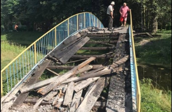 Старий міст, який був у аварійному стані, демонтовують у Центральному парку Луцька