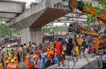 В індійському місті Варанасі дві опори одного з прольотів шляхопроводу зруйнувалися. Відтак, величезна бетонна плита впала на людей, легкові автомобілі та автобус