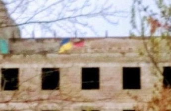 У центрі окупованого Донецька в п’ятницю, 20 квітня, невідомі вивісили на недобудові синьо-жовтий прапор України і, ймовірно, червоно-чорний прапор УПА