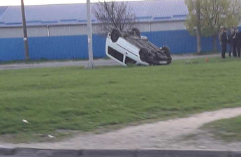 На кільці поблизу луцького авторинку, що на вулиці Єршова, лежить перевернутий «чобіток» Opel