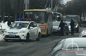 У центрі Луцька трапилася автопригода за участю маршрутки та легковика