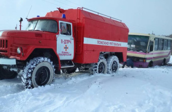 На Волині у снігових заметах застрягли швидка і рейсовий автобус