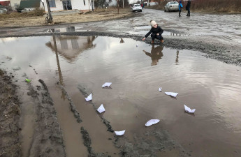 «Кораблик до серця мера»: діти Ковеля, які роками ходять бездоріжжям, провели акцію у «баюрі»
