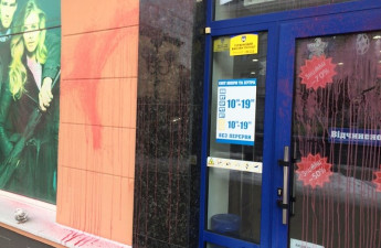 Магазин «Світ шкіри та хутра» на проспекті Волі у Луцьку невідомі облили фарбою.