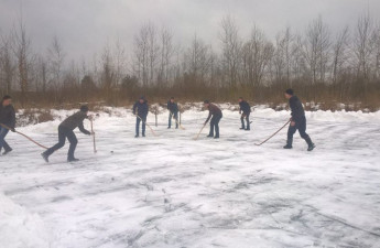 У селі Полиці, що на Волині, чоловіки вирішили зіграти у хокей на замерзлому ставку.