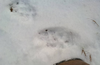 Під час патрулювання лісових масивів Шацького національного парку було знайдено нічні сліди вовка, трохи притрушені снігом