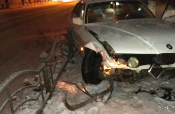 У Луцьк «БМВ» знесло металеву огорожу. Фото