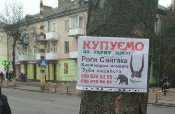Вулиці Луцька заполонила дуже дивна реклама. Практично в кожному районі міста невідомі громадяни обклеїли електроопори банерами з незвичною пропозицією. Люди готові купити роги сайгака, бивні моржа та…