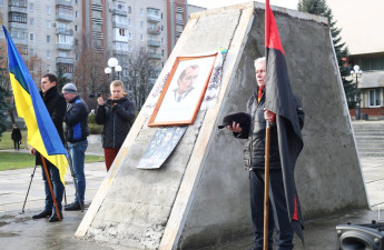 Декілька десятків містян зібралися перед місцем встановлення майбутнього монумента Степану Бандері, що на площі Героїв Майдану в Луцьку, аби вшанувати пам'ять героя, обговорити значення його націоналі…