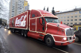 Луцьком кружляє святкова вантажівка Coca-Cola. Фото