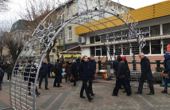 Новорічні арки встановлюють 28 грудня у центрі Луцька на вулиці Лесі Українки, біля Театрального кафе