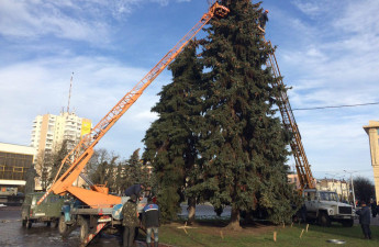 Прикрашати ялинки, які ростуть на Театральному майдані Луцька, до новорічних свят розпочали у вівторок, 12 грудня