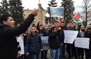 У Харкові палестинці вийшли на акцію протесту. Учасники акції виступають проти рішення президента США про визнання Єрусалиму столицею Ізраїлю