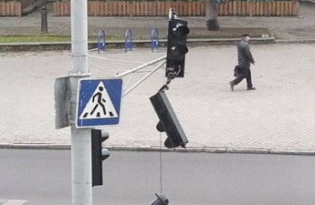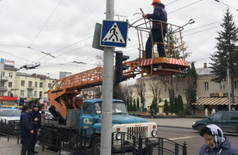 Світлофор, який регулює пішохідний перехід на проспекті Волі біля ЦУМу, збила вантажівка
