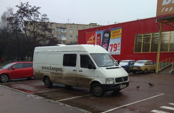 На вулиці Ветеранів біля супермаркету «Велмарт» водій буса перегородив своїм авто одразу три паркувальних місця