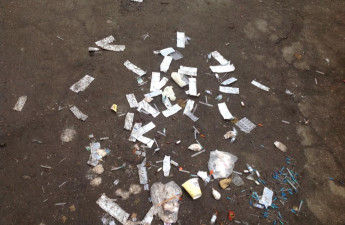 У дворі будинку за адресою Відродження, 39, що знаходиться поблизу лікарні, знайшли голки від шприців, використані ампули і вату з кров'ю