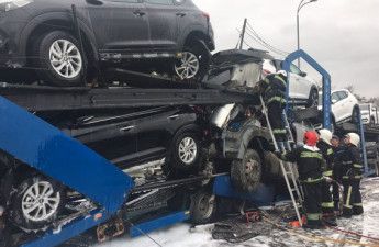 Одразу чотири авто зіткнулися на трасі Київ-Чоп у Рівненській області. В аварію потрапили бензовоз, вантажівка та дві фури, які перевозили нові машини