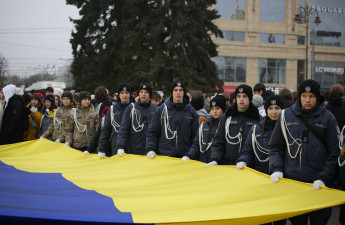 У центрі Луцька розгорнули 200-метровий український стяг. Фоторепортаж із Дня Соборності