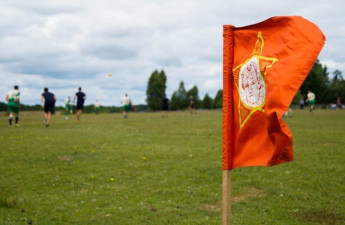 Червоні кутові прапорці, що використовувались під час під час матчу, містили елементи комуністичної символіки