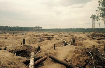 "Місячний пейзаж" на місці сотень гектарів лісу виявили активісти "Автомайдану" в Поліських лісах. Про це пише журналіст Денис Казанський у своєму "Фейсбук"