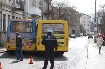 Два автобуси «притерлись» боками поблизу Луцької міської ради. Ніхто з пасажирів не постраждав а машини відбулись легкими пошкодженнями