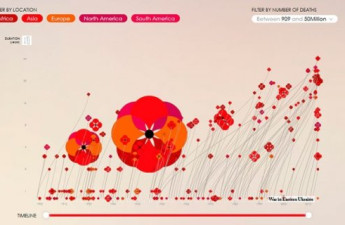 Дизайнер Валентина Дефілліппо і програміст Ніколас Пайгелет з Лондона створили інтерактивну візуалізацію світових воєн ХХ-го та початку ХХІ століть.