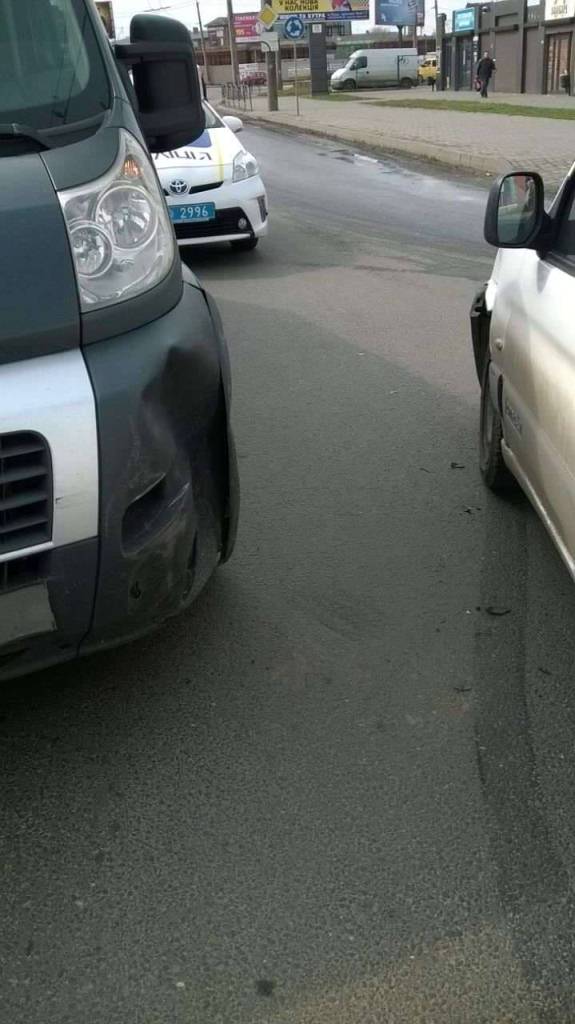 Сама ДТП сталася просто під світлофором. Нині на місці працюють працівники патрульної поліції. Як повідомила речниця патрульних Ольга Бузулук, ДТП, на щастя, трапилася без потерпілих, наразі копи оформляють документи.