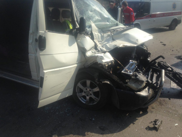 Передня частина мікроавтобуса зазнала значних механічних пошкоджень.