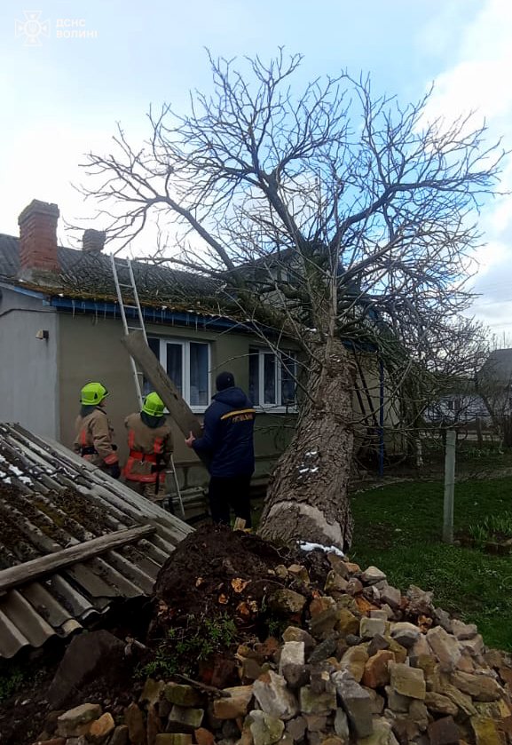 На місце події спрямували чергову варту 22 державного пожежно-рятувального поста. Вони розрізали дерево, прибрали його з будівлі й відтягнули на прибудинкову територію.