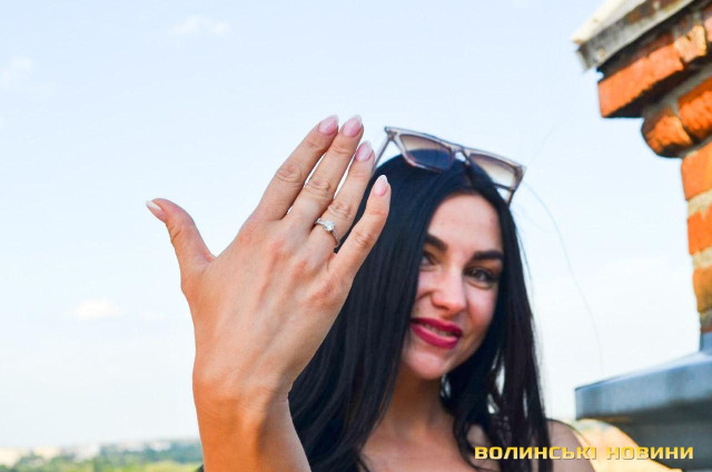 Ідея освідчитися на вежі Луцького замку була раптовою, але дуже вдалою. Лише уявіть, яка атмосфера панувала там. Під романтичну мелодію скрипки Юрій став на одне коліно та, розкривши коробочку із омріяною каблучкою, промовив таке довгоочікуване: «Ти вийдеш за мене?»
