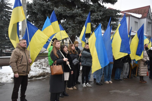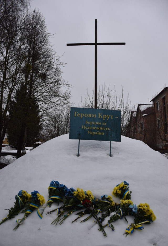 Учасники мітингу поклали квіти до підніжжя пам’ятного знака Героям Крут, хвилиною мовчання вшанували пам’ять молодих патріотів.