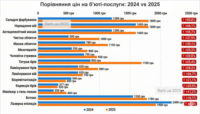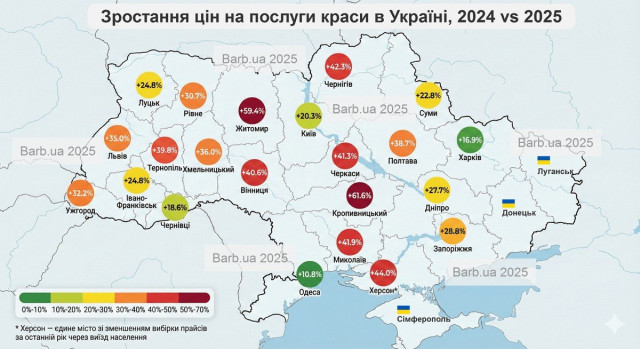 Платформа проаналізувала 260 тисяч прайс-позицій від салонів краси та приватних майстрів у 22 обласних центрах країни за період осінь 2024 – осінь 2025.