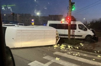 У Луцьку на перехресті зіткнулися два буси, один від удару перекинувся на бік