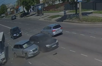 Момент зіткнення трьох автомобілів зафіксували камери відеоспостереження «Безпечне місто Луцьк» на вулиці Ковельській.