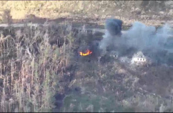 Відео було знято з дрону. На ролику видно село, в якому були українські військові, а також наслідки потужного вибуху.