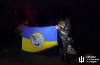 На відео видно, як українські спецпризначенці на невеликих човнах підійшли до кримського узбережжя і висадились там. Згодом вони постали перед камерами з синьо-жовтим стягом.