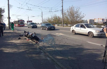 На проспекті Перемоги зіткнулися автомобіль і мотоцикл. Наразі бригада швидкої працює на місці і надає допомогу постраждалим.