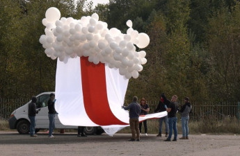 На Волині біля кордону запустили у повітря заборонений у Білорусі прапор