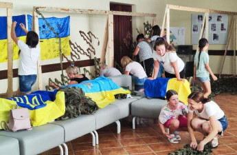У Липинах волонтери плетуть маскувальні сітки для танкістів