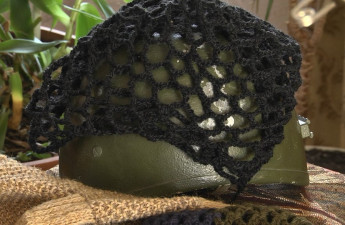 Нашоломники, які виготовляють, волонтерки, – це в’язана сітка, до якої прикріплені стрічки захисного кольору. Схему в'язання майстрині розробили самі.