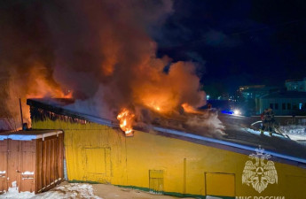 У російському Мурманську 24 грудня спалахнула пожежа на базі постачання «Фактор», охоплена вогнем площа становить 500 квадратних метрів.
