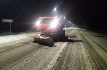 Оскільки сніг продовжує випадати, дорожні служби й надалі працюють у посиленому режимі.